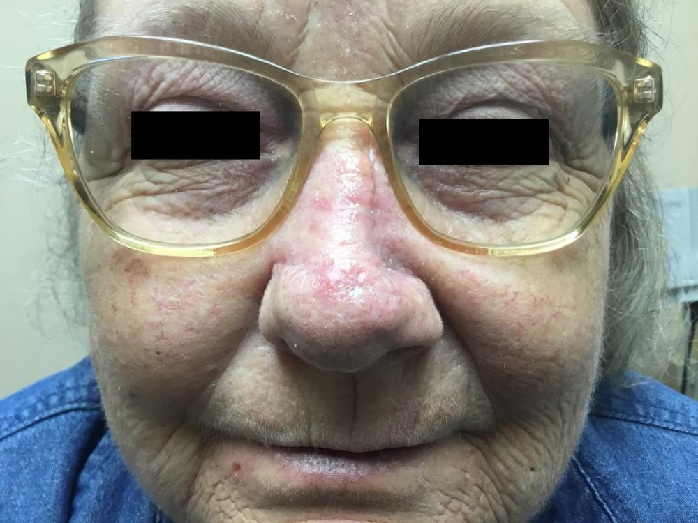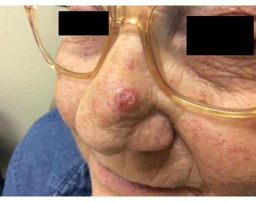 A 61 year-old female patient presented to our Pine Belt Dermatology complaining of a sore lesion on her nose